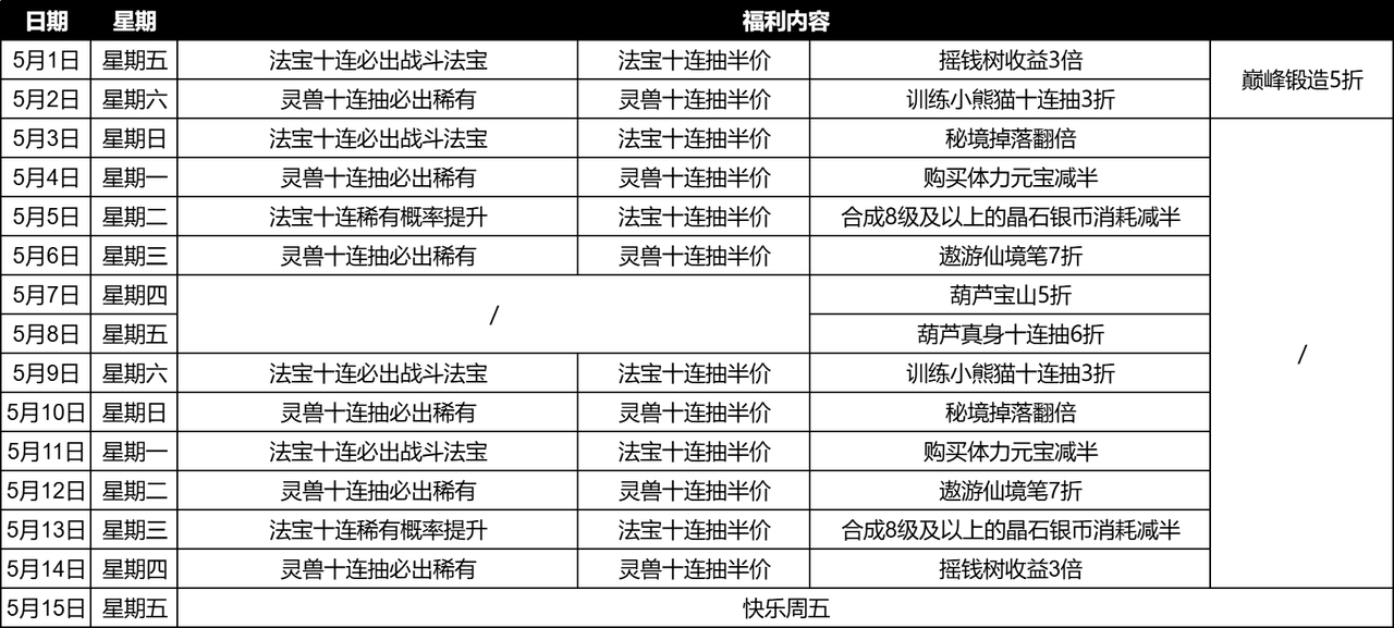 葫芦娃手游-4月28日正式服10周年庆版本更新公告